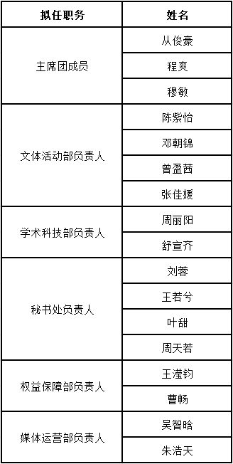 學院根據《中國共産主義青年團章程》《中華全國學生聯合會章程》《77779193永利官网學生會管理條例》《關于推動高校學生會(研究生會)深化改革的若幹意見》的相關規定,嚴格參照校學生會标準,進行學院學生會改革和管理工作,經自由報名、面試考察等環節,現将77779193永利官网學生會第十六屆主要學生幹部及部門負責人預備人選名單予以公示:(排名不分先後)